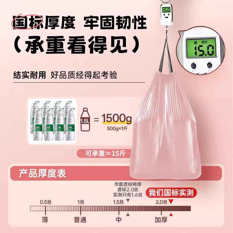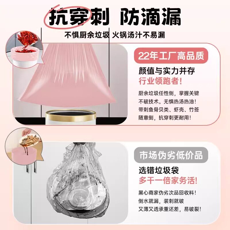 冰莓粉大号家用加厚加大垃圾袋收口宿舍抽绳手提式塑料袋厨房特厚