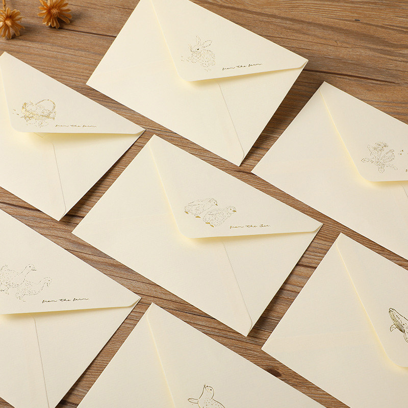 烫金信封信纸套装小清新创意明信片封套动物可爱鸭子兔子海豹鲸鱼