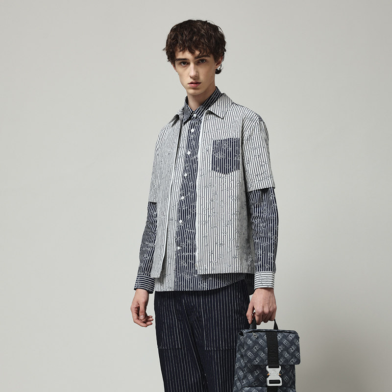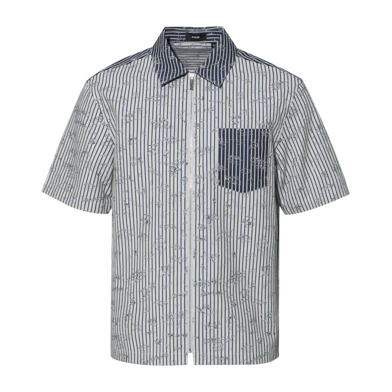 RARE威雅男装夏季新款潮流版蓝白趣味图案拉链短袖衬衫