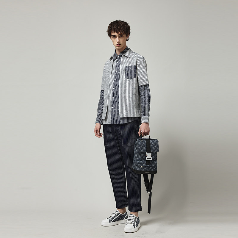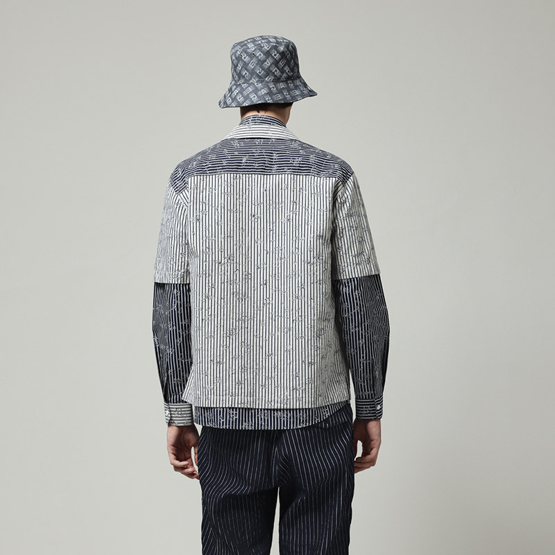 YOKE STUDIO美式休闲Cleanfit条纹衬衫男女宽松长袖衬衣外套情侣