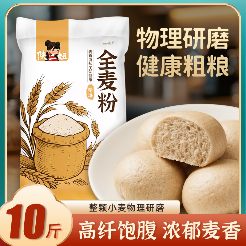 10斤全麦面粉含麦麸面包杂粮5kg家用粗粮无添加专用麦香面条普通