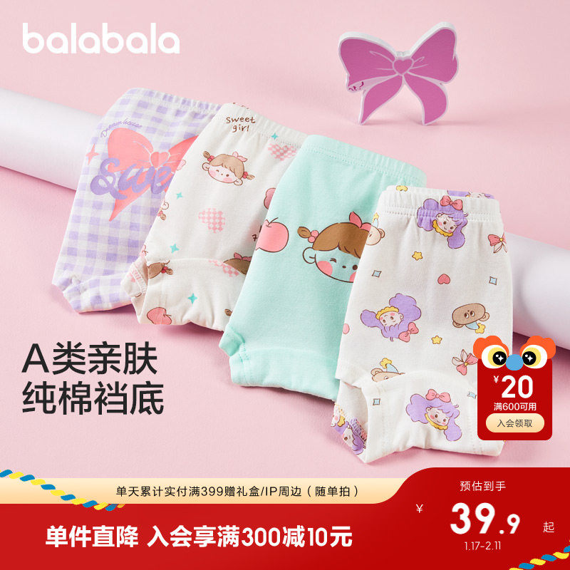 迷你巴拉巴拉儿童内裤男女宝宝抑菌不夹pp四角短裤5条装棉平角裤