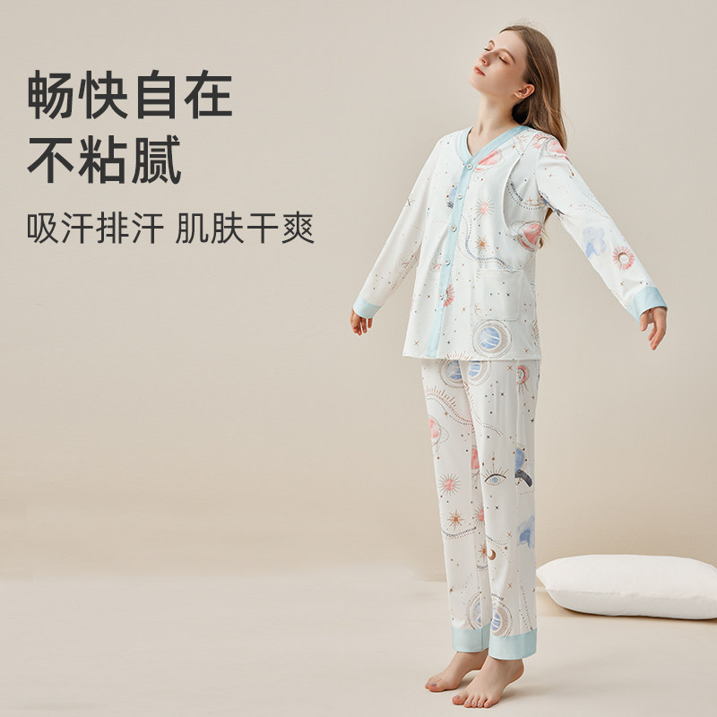 十月结晶月子服孕产妇胸垫哺乳睡衣产后纯棉怀孕期家居服套装秋季