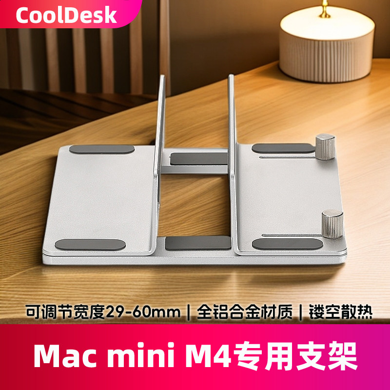 CoolDesk迷你主机支架Mac mini M4立式支架微型PC小电脑M2底座散热铝合金可调侧立竖立收纳直立macmini通用