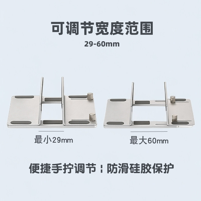 立式放置 | 镂空散热 | 铝合金 | 可调宽度