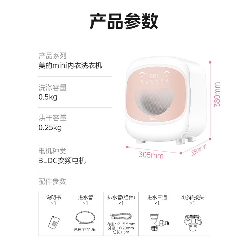 美的 0.5KG内衣裤洗衣机迷你婴儿宝宝小型全自动洗烘一体除菌除螨