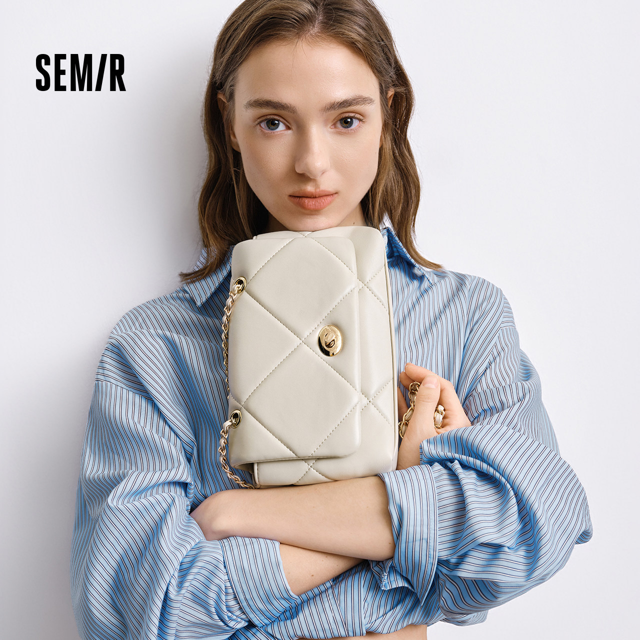 南风Chio2nd 磨砂牛皮栗木奶霜小方包冬季质感通勤链条单肩斜挎包