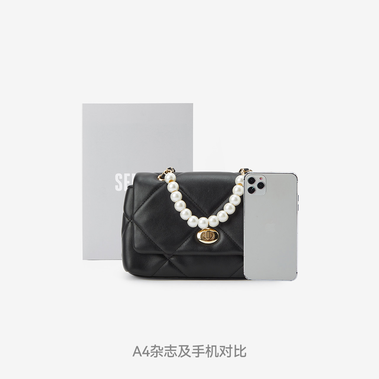 菱格小香风小方包 珍珠链条单肩斜挎包