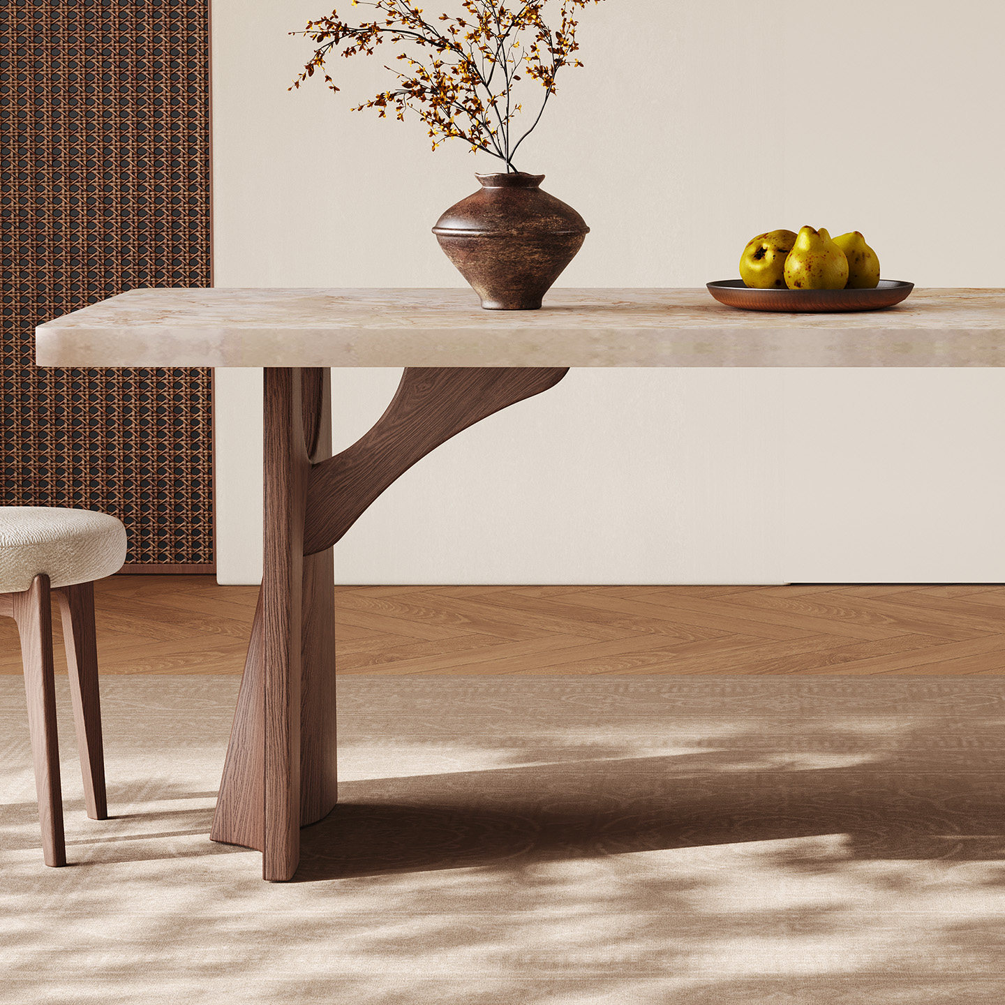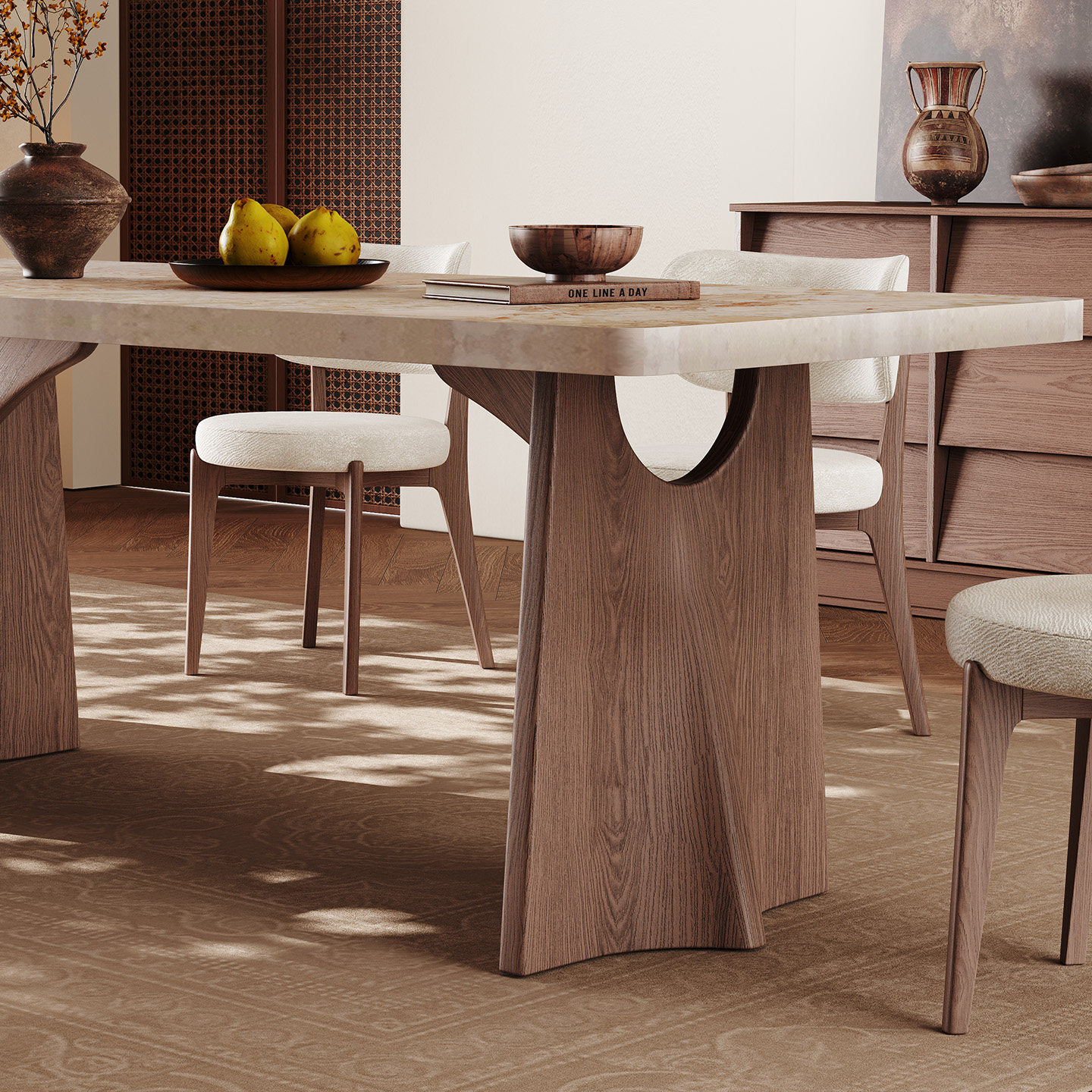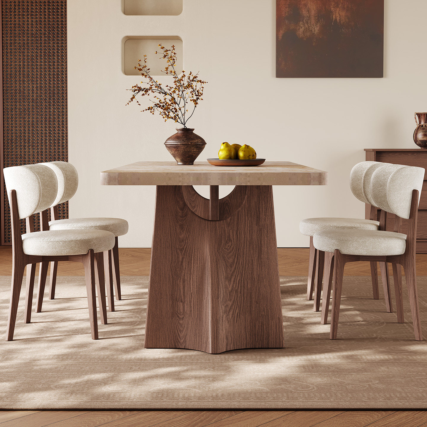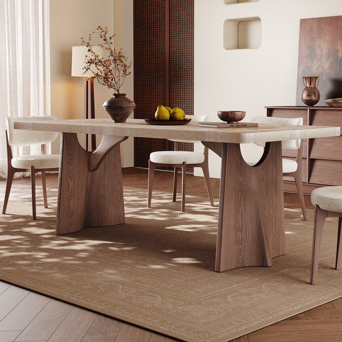 实木餐桌家用长方形现代简约高端侘寂风新款下挂加厚莫奈岩板餐桌