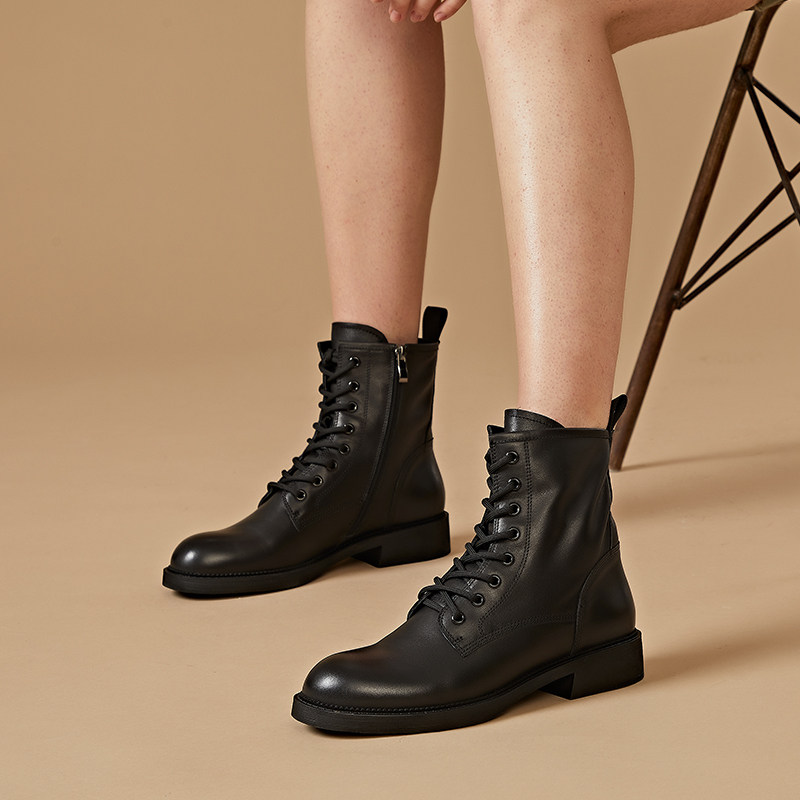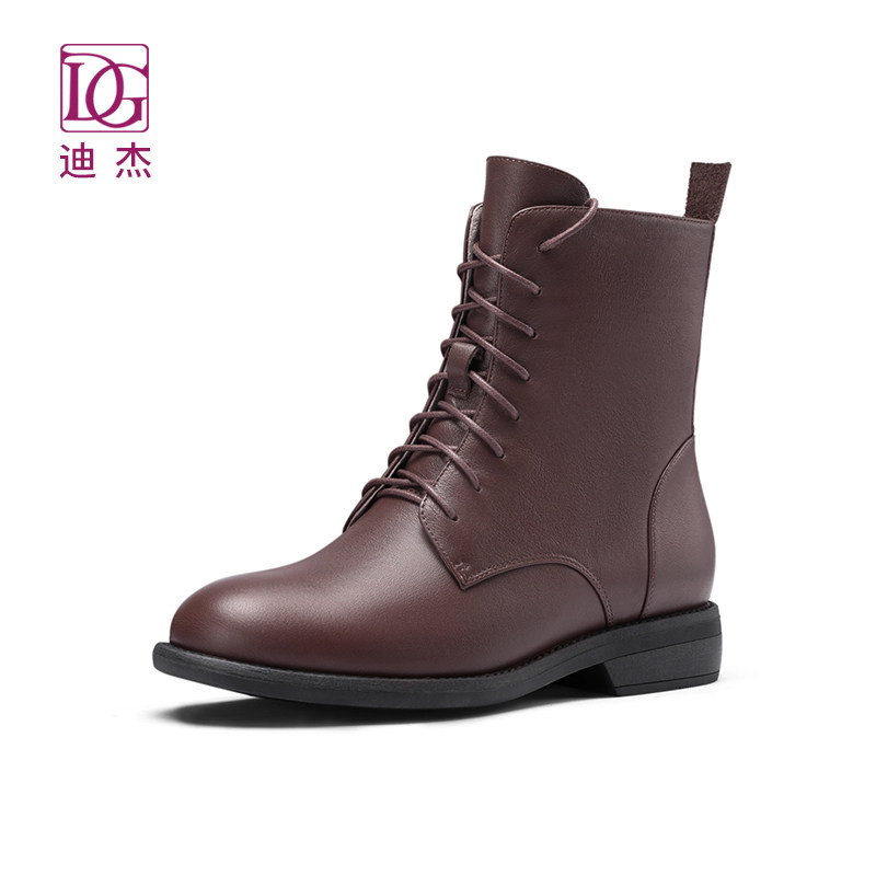DG真皮马丁靴女短靴秋冬单靴新款头层牛皮加绒英伦风皮靴踝靴