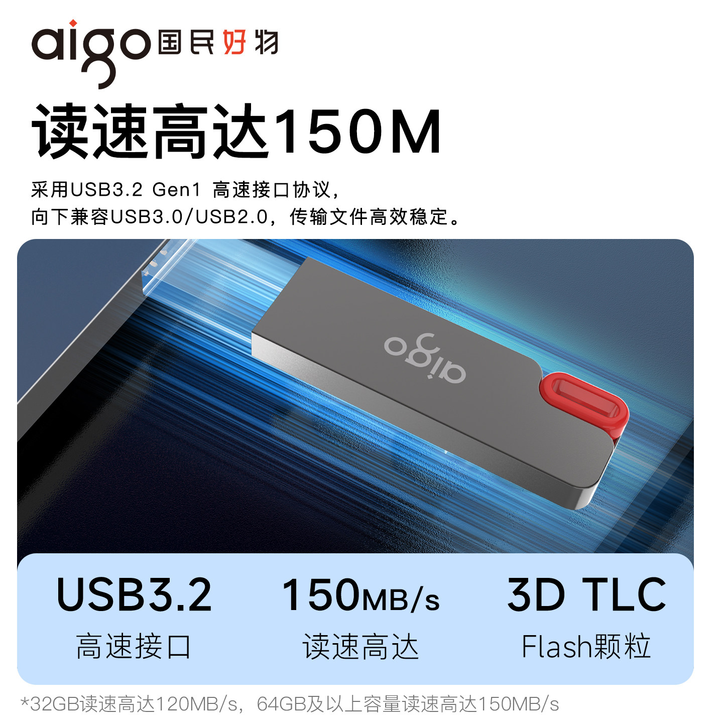 Aigo爱国者u盘128g大容量正品高速usb迷你车载学生电脑存储64g优