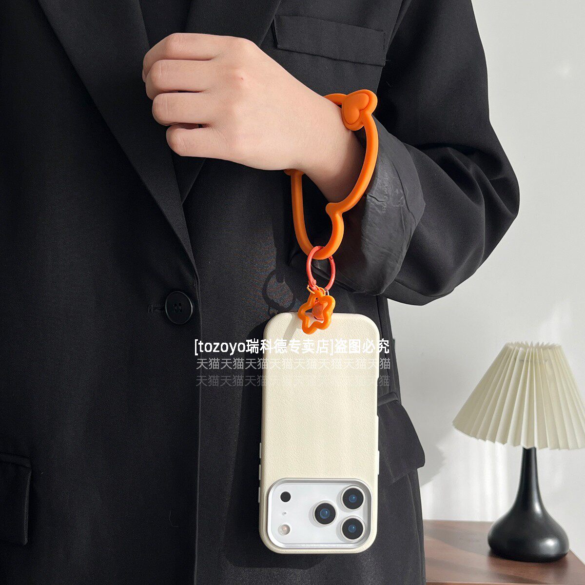 可爱橙色手机链挂绳手环扣挂饰高端液态硅胶手腕绳适用iPhone17pro爆款苹果16爱心挂件max腕带手绳铃铛吊坠壳