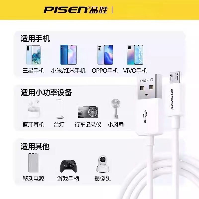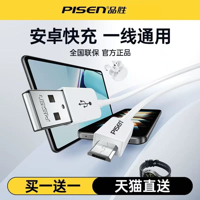 品胜安卓数据线高速2A快充Micro usb老式梯形接口充电线适用小米5红米OPPO酷派VIVO华为老款手机电源充电器头