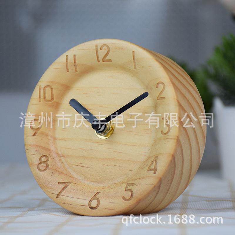简约时尚床头静音小时钟卧室木质实木台钟学生座钟创意原木时钟表