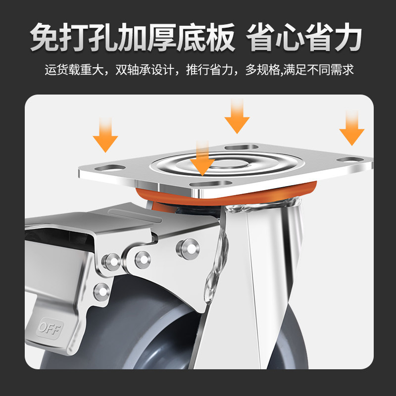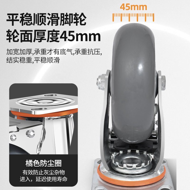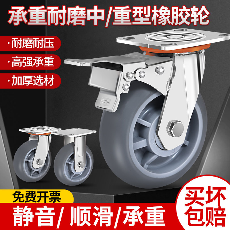 万向轮轮子重型平板手推车静音轮拖车滑轮带刹车34568寸橡胶脚轮