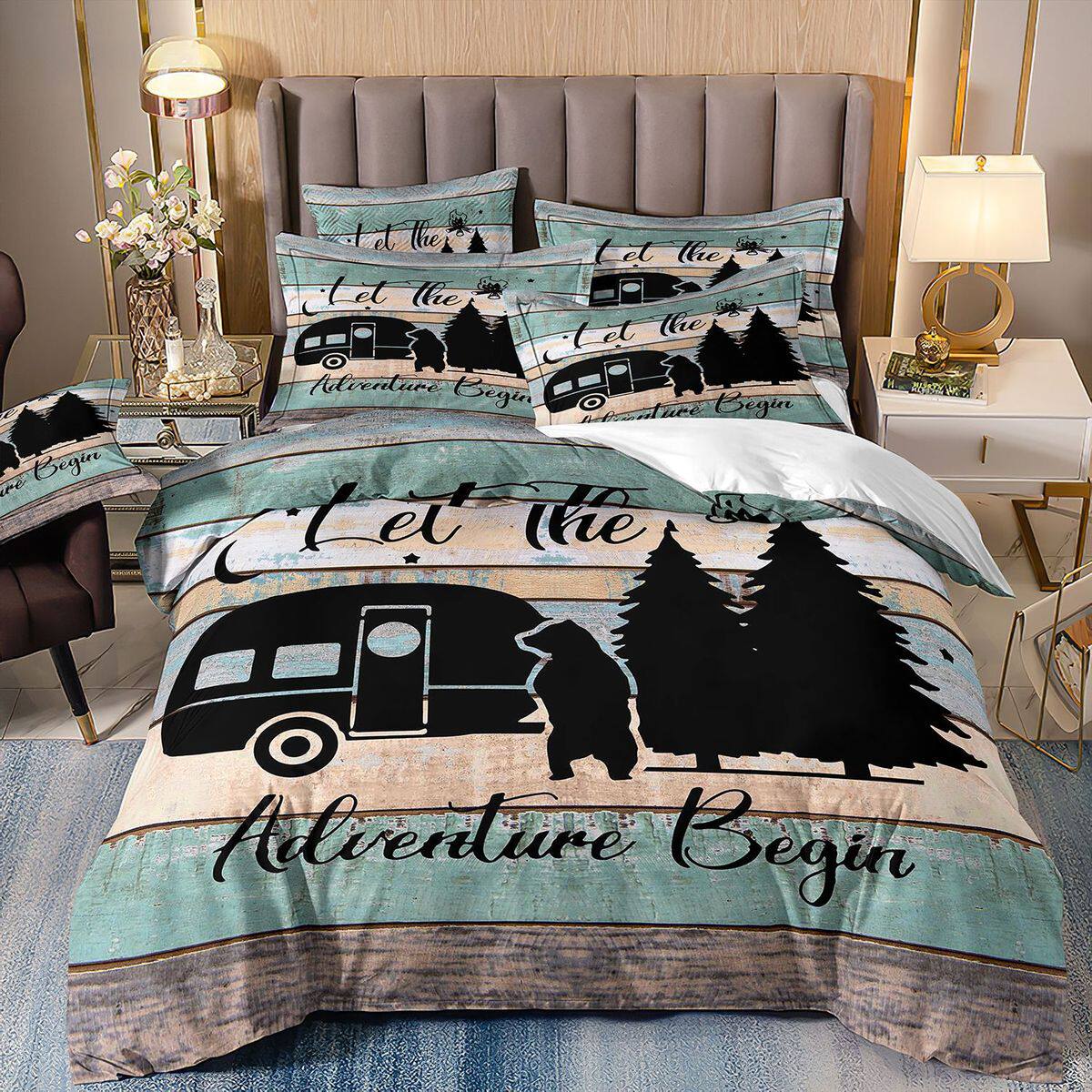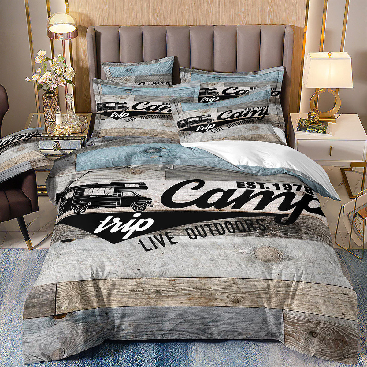 camping三件套外贸3d被套风景旅行车露营帐篷床上用品