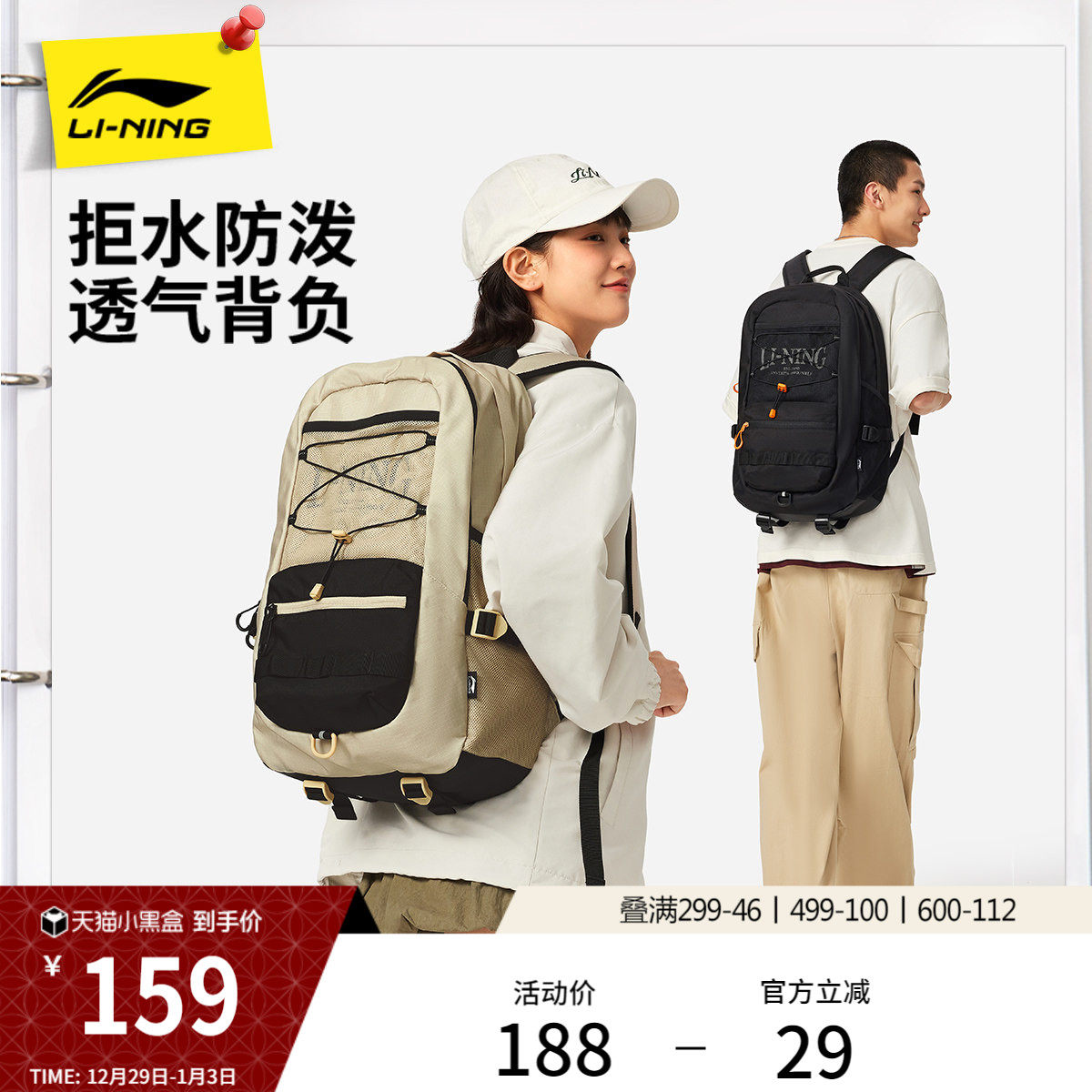 李宁双肩包男女2026新款户外旅行背包学生书包轻便徒步登山运动包