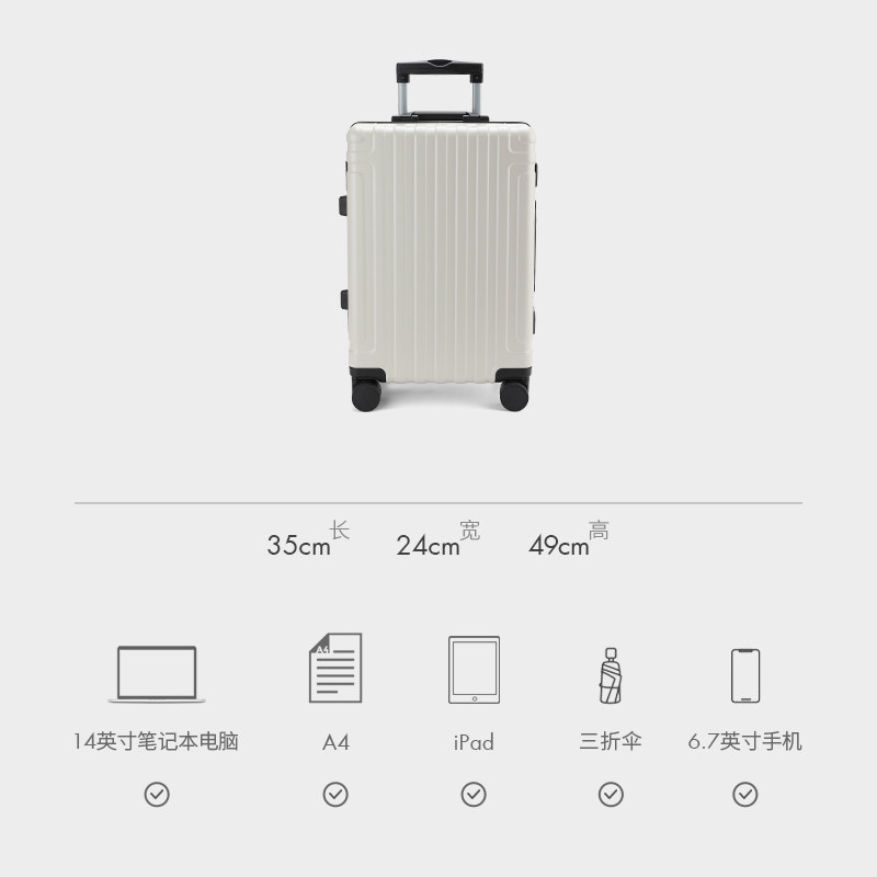 米熙高颜值品质登机20寸拉杆行李箱女大容量24结实小旅行箱子男26
