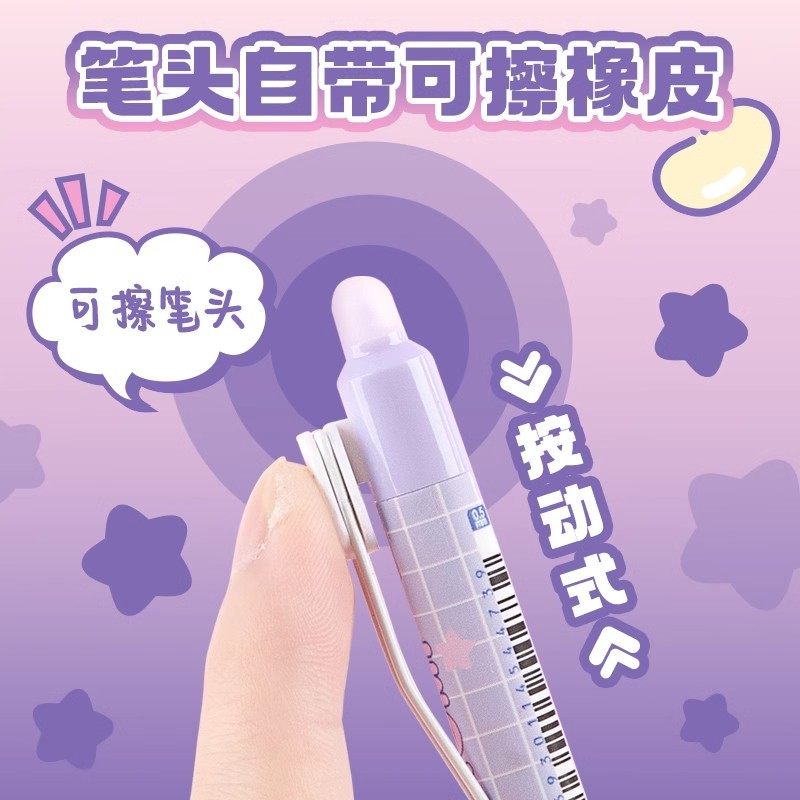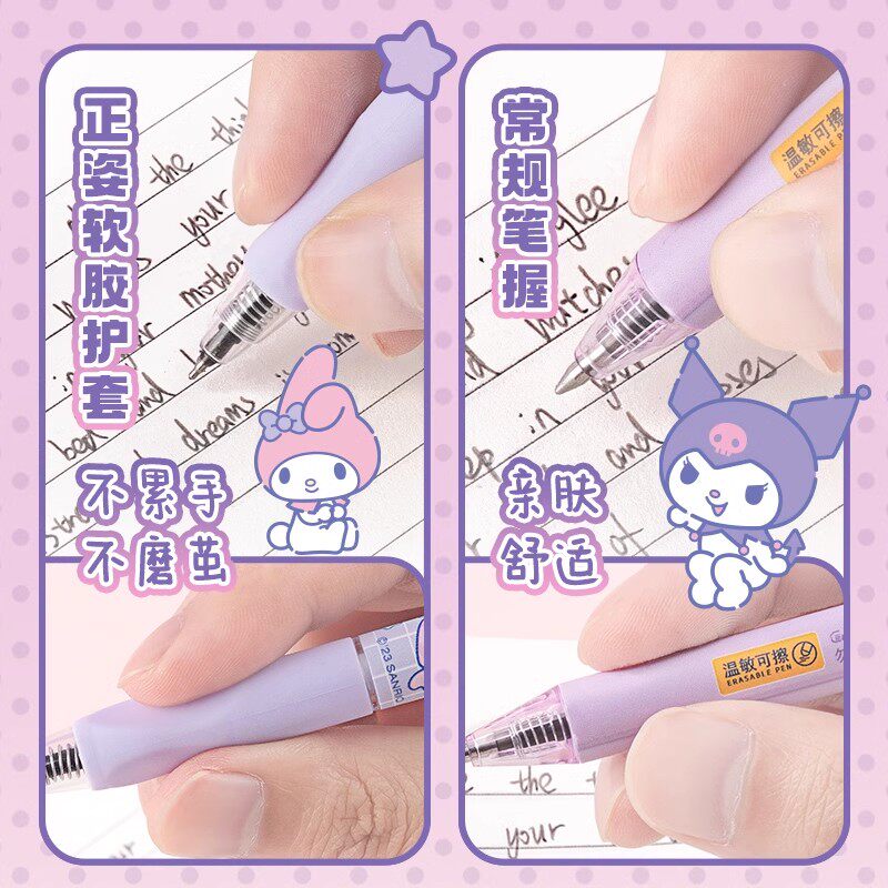 广博三丽鸥文具热敏可擦中性笔ST头按动笔帕恰狗可擦笔小学生专用三年级蓝色水笔黑笔按动式库洛米学习用品