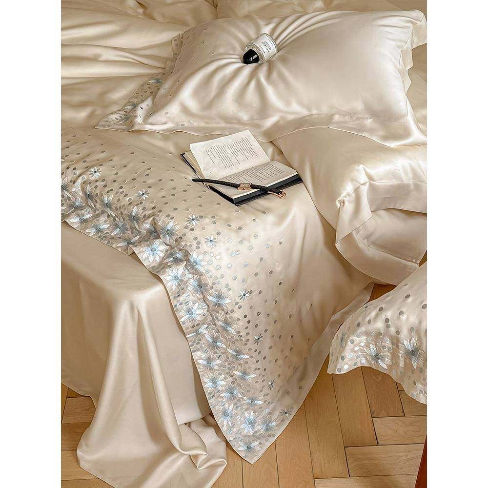 春夏季少女心凉感100支兰精莱赛尔四件套花卉刺绣丝滑被套1.8床品