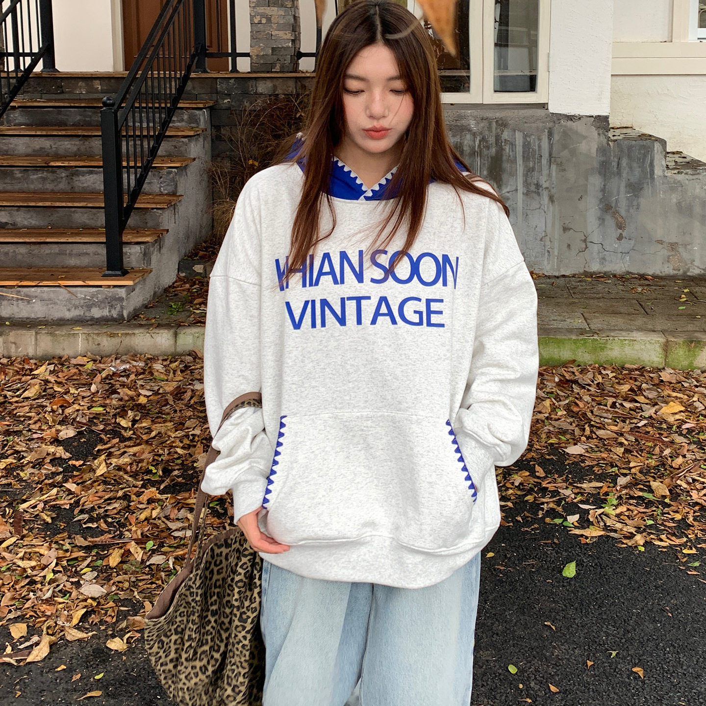奥特莱斯A长袖圆领卫衣女2025秋冬季宽松情侣连帽卫上衣男女同款