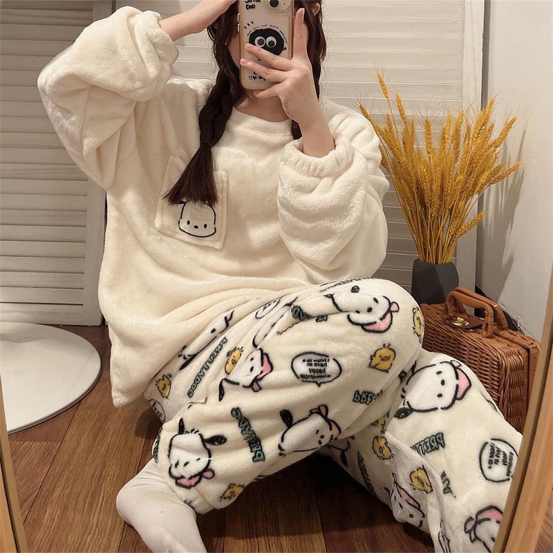 冬日暖绒绒!11色巨可爱卡通珊瑚绒加厚加绒家居服套装可外穿H