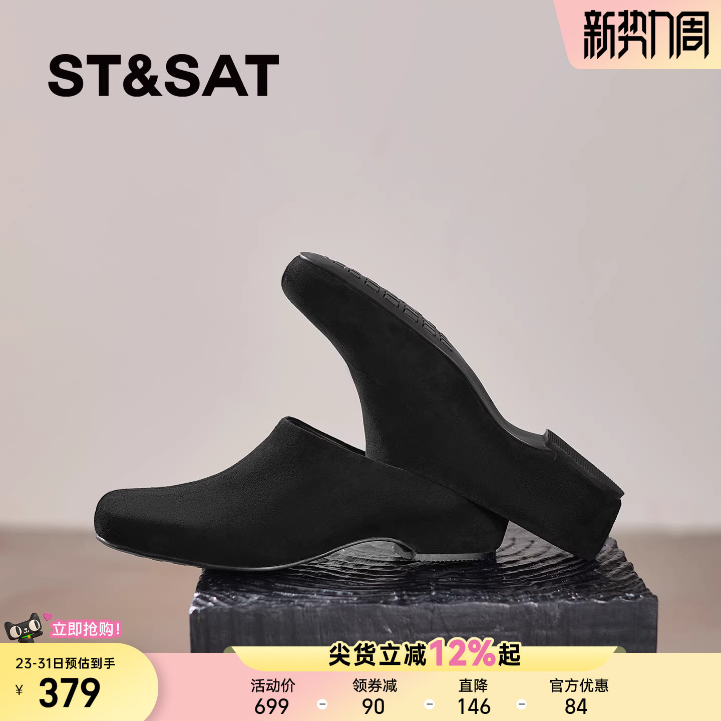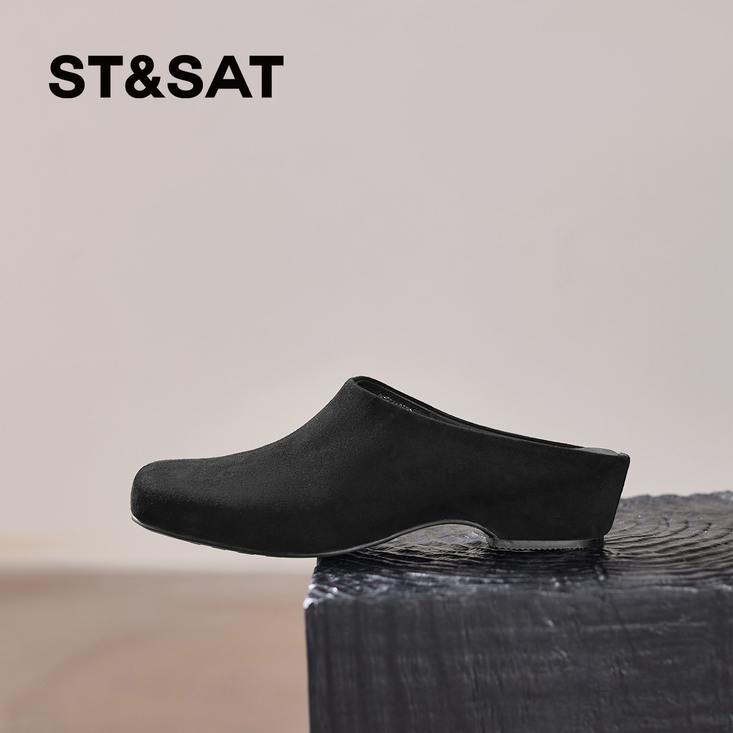 星期六包头拖鞋女夏外穿2026新款真皮穆勒鞋方头坡跟高级感懒人鞋