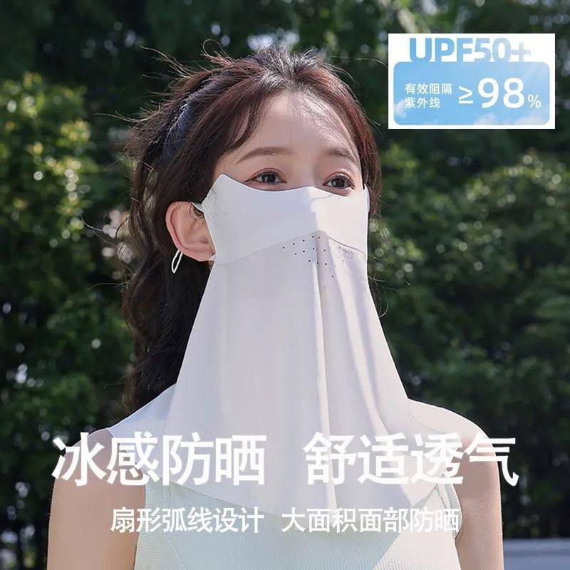 护颈防晒口罩女夏无痕冰丝骑行长款透气防紫外线面罩遮阳护眼角