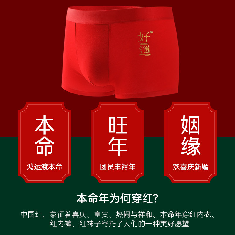 礼盒|蕉内红色计划5系莫代尔纯棉内裤男女生本命年结婚马年新年红