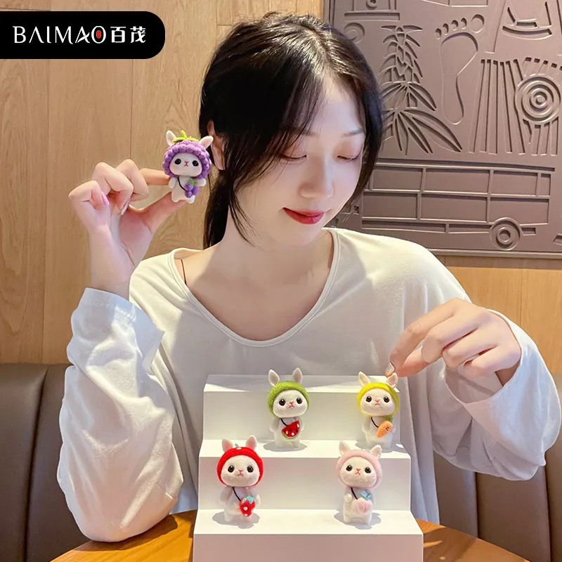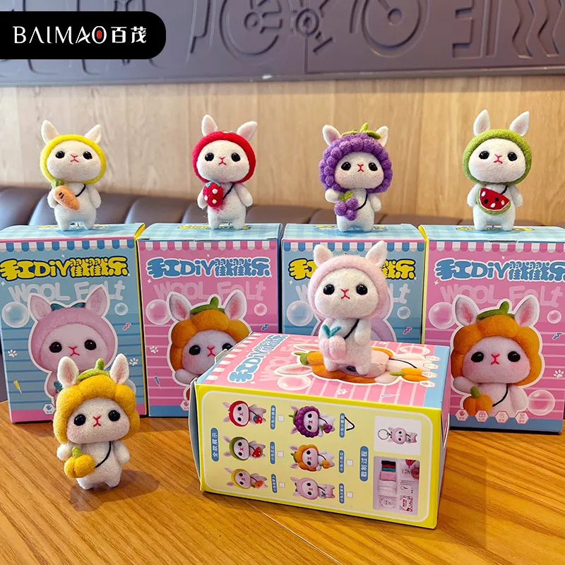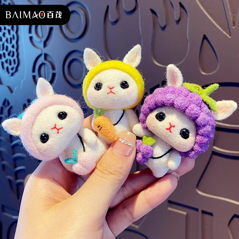 卡通手工羊毛毡戳戳乐diy材料包小白兔毛绒公仔钥匙扣车挂饰玩偶