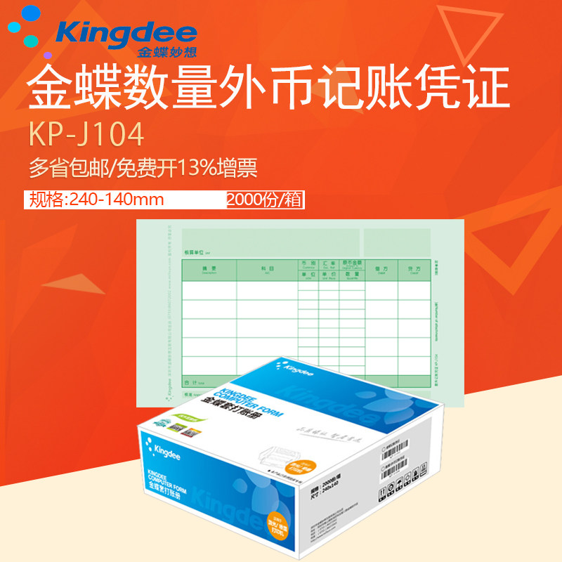 金蝶发票版数量外币KP-J104激光记账凭证会计套打打印纸240*140mm金蝶软件增值税发票版会计记账凭证打印账册