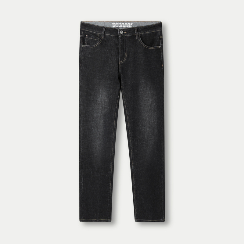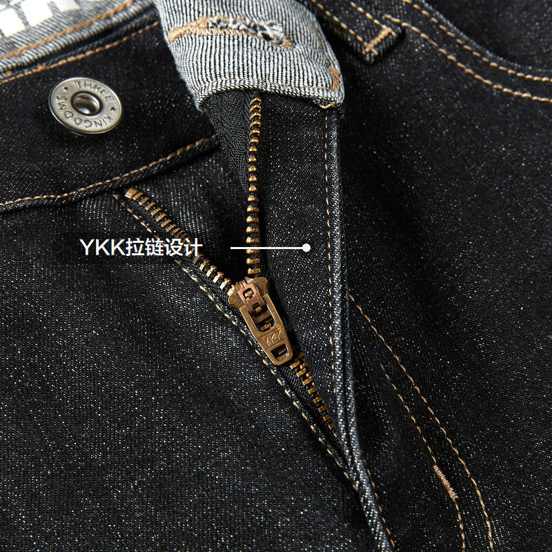 HLA/海澜之家三国演义黑牛仔裤秋冬新加绒加厚五袋款直筒裤子男士
