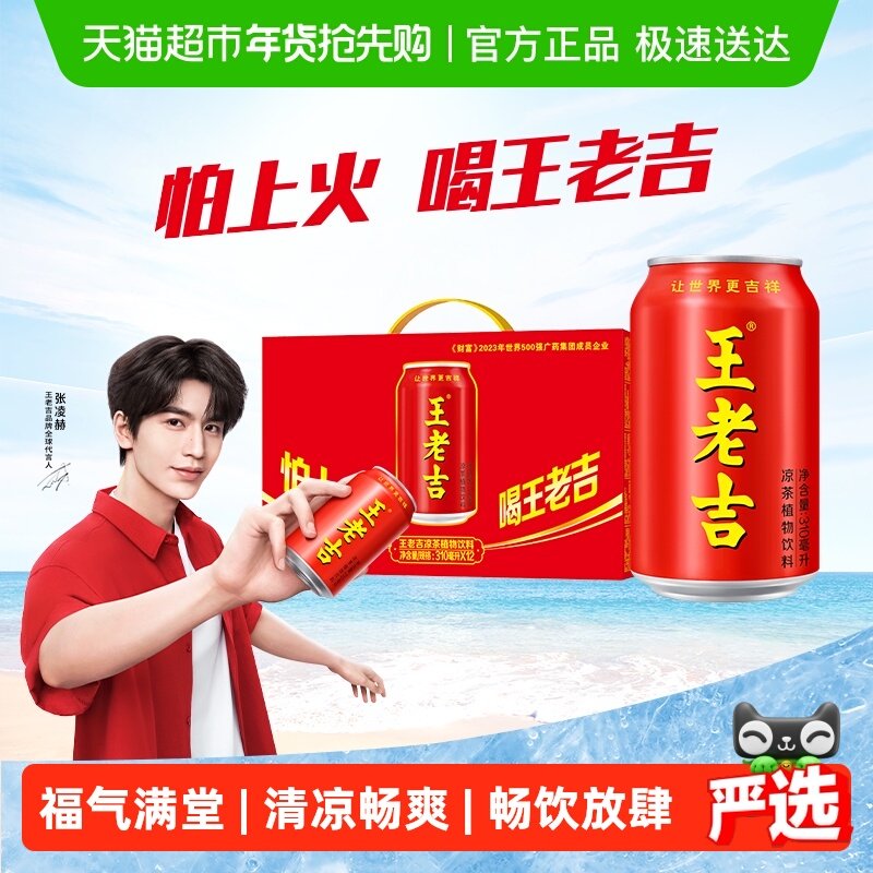 【张凌赫同款】王老吉凉茶植物饮料310ml*12罐清爽解辣解腻