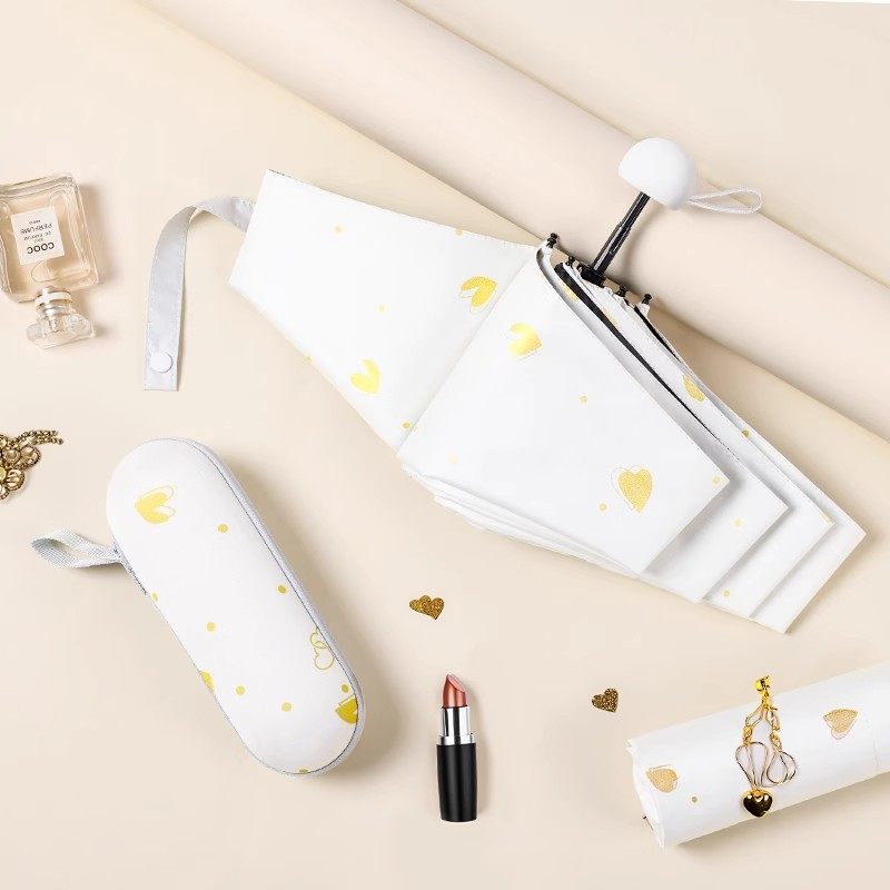 高颜值五折爱心伞迷你小巧便捷口袋伞黑胶专业防晒晴雨夏日小清新