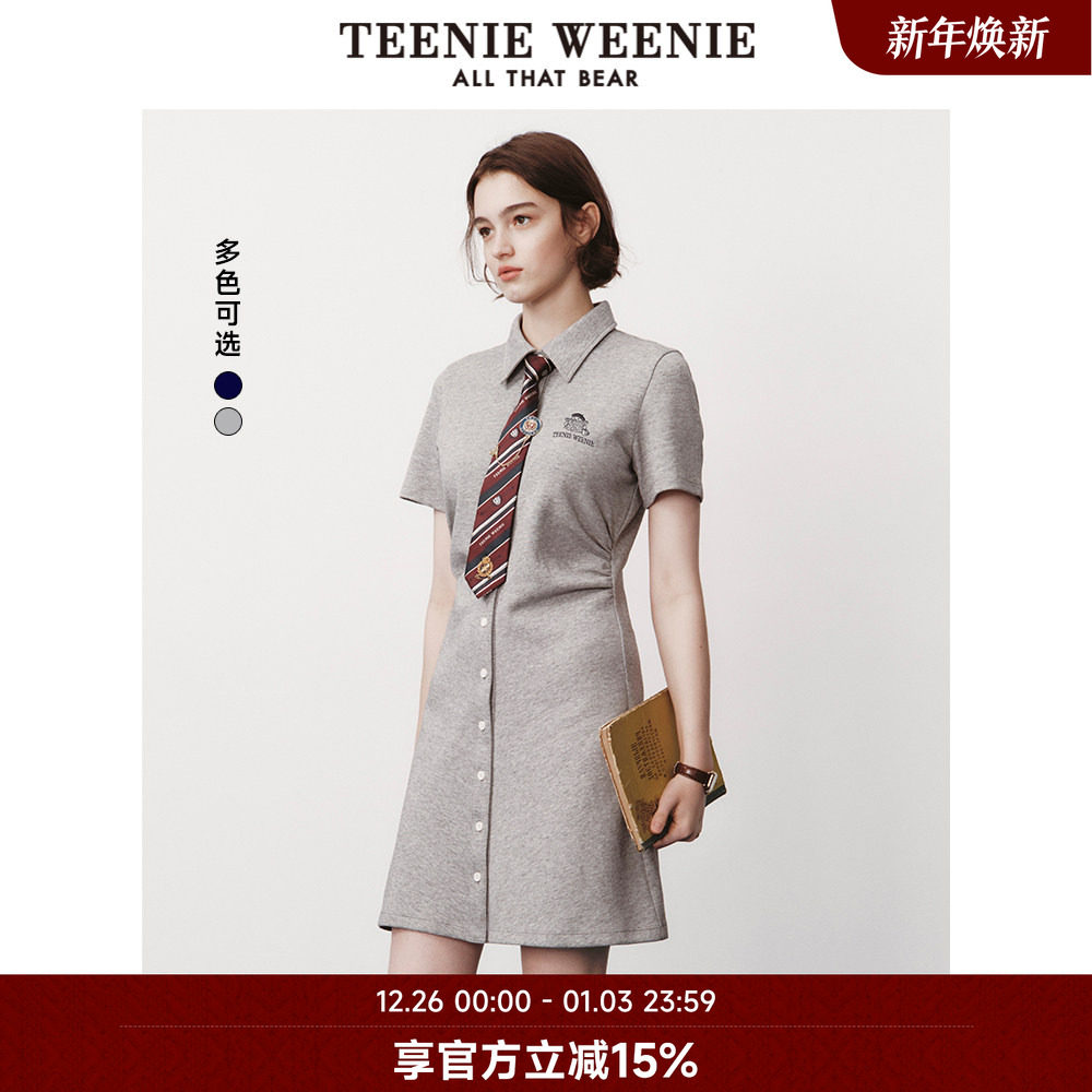 TeenieWeenie小熊奥莱连衣裙2025秋季新款简约休闲时尚刺绣女短裙