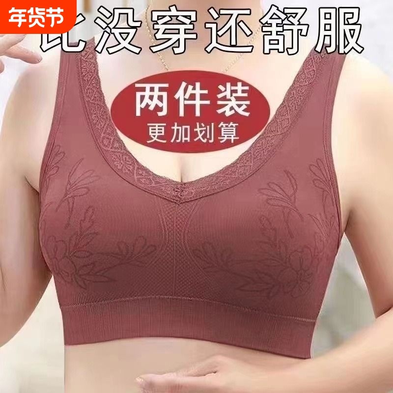 妈妈内衣女2024新款夏中老年运动美背文胸一体防下垂无钢圈聚拢