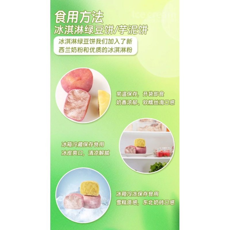 【升级新品】0脱氢0蔗糖冰淇淋绿豆饼芋泥饼老式绿豆糕代餐饱腹
