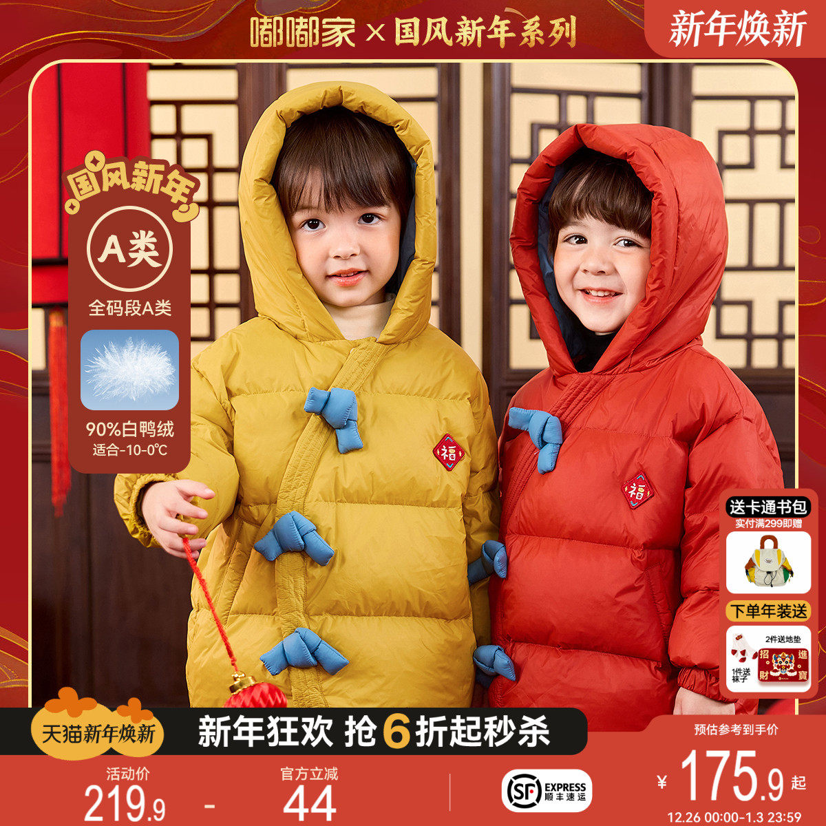 嘟嘟家儿童新年拜年服男童羽绒服冬季宝宝红色喜庆唐装女童过年装