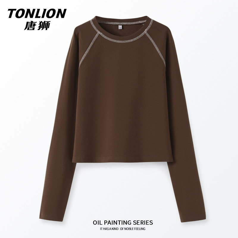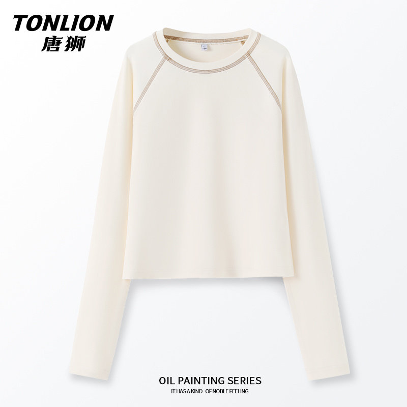 唐狮长袖t恤女2025年春装新品修身显瘦上衣小个子内搭打底衫VB