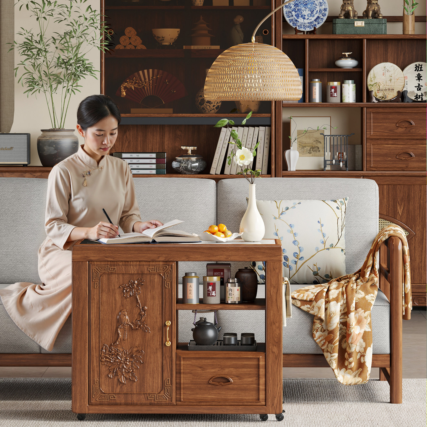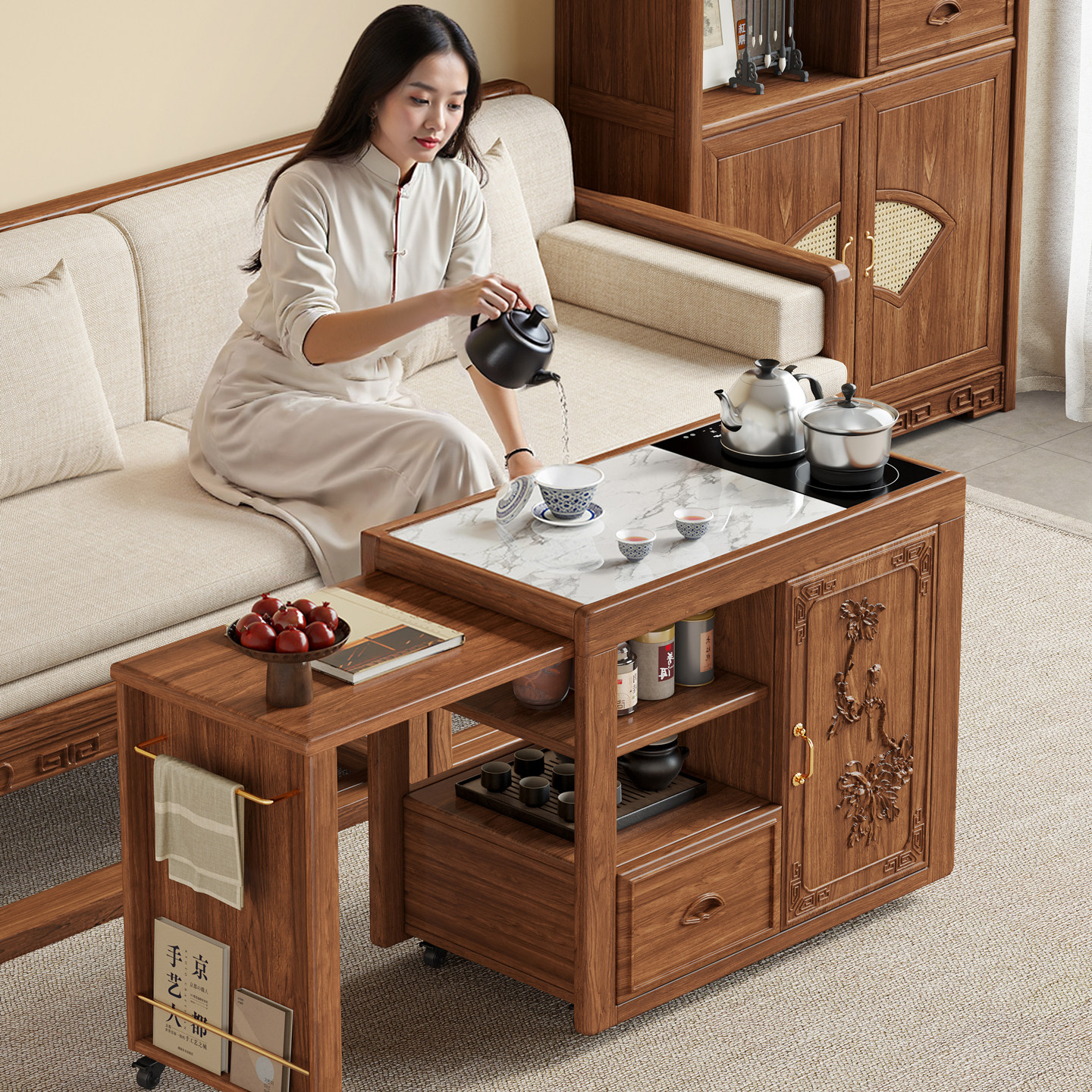 政府补贴新中式可移动茶水柜实木茶桌边柜边几阳台小型烧水泡茶台