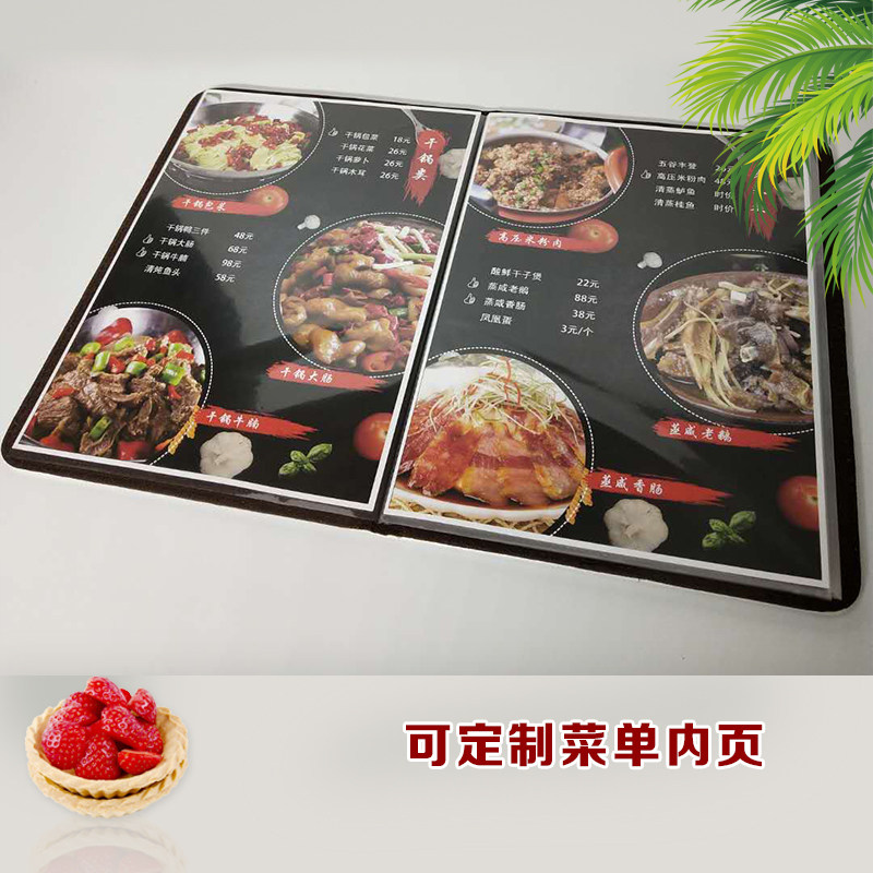 活页菜单本菜谱h定制价目表s制作PVC点菜夹A4菜单夹 西式餐牌设计