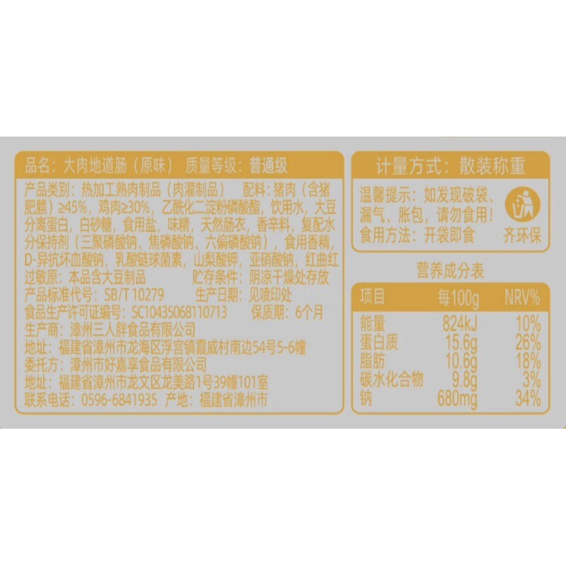 好嘉享即食大肉纯肉地道肠脆皮肠黑胡椒原味香肠熟食烤肠散称解馋