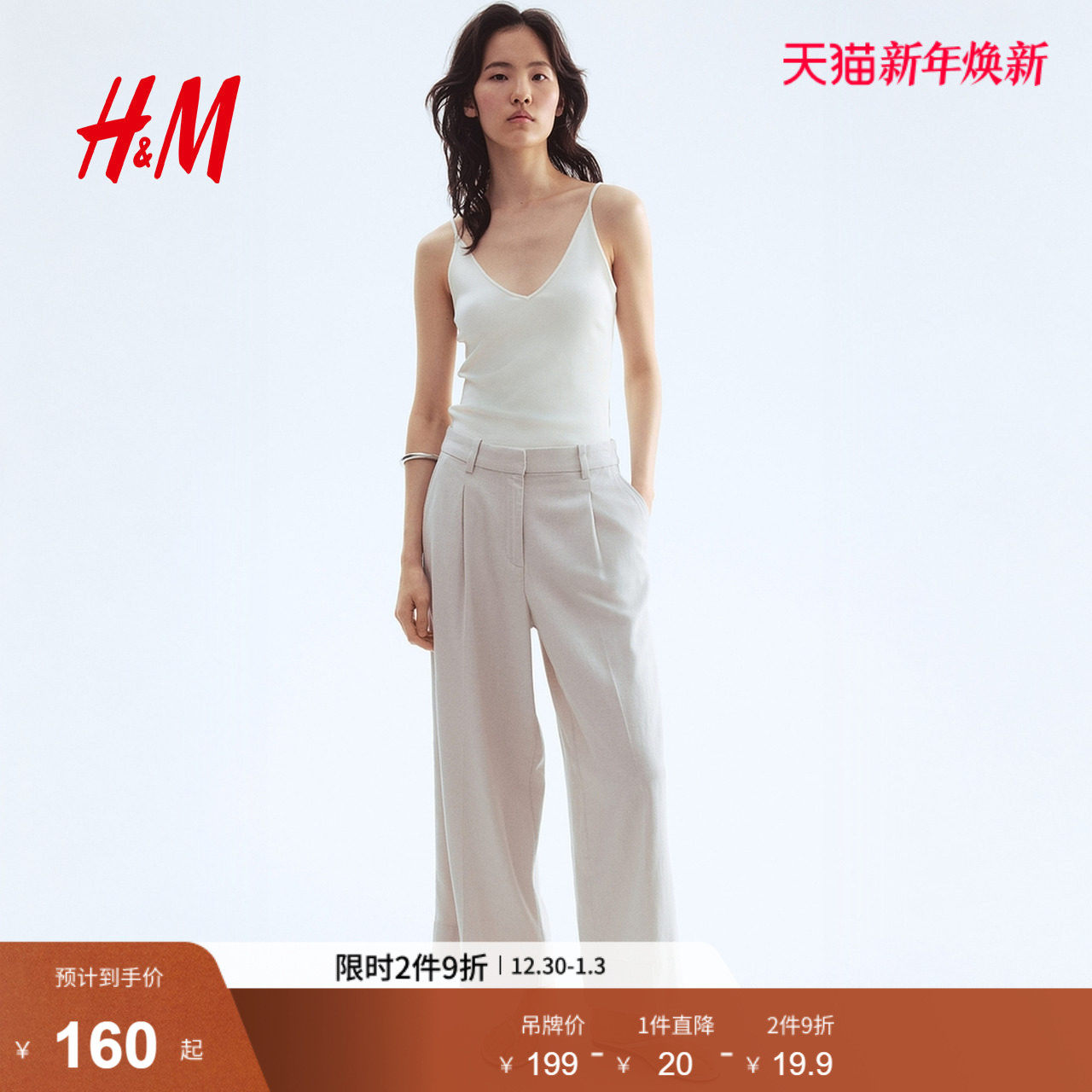HM女装西装裤2025年冬季新款时尚亚麻混纺阔腿裤1283390