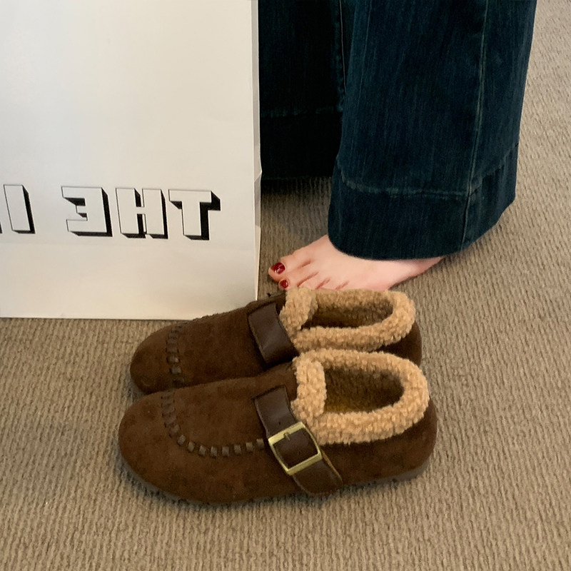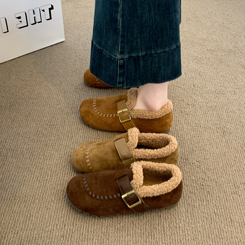 低帮厚底雪地靴女2025新款冬季懒人一脚蹬毛毛棉鞋加绒加厚女鞋子