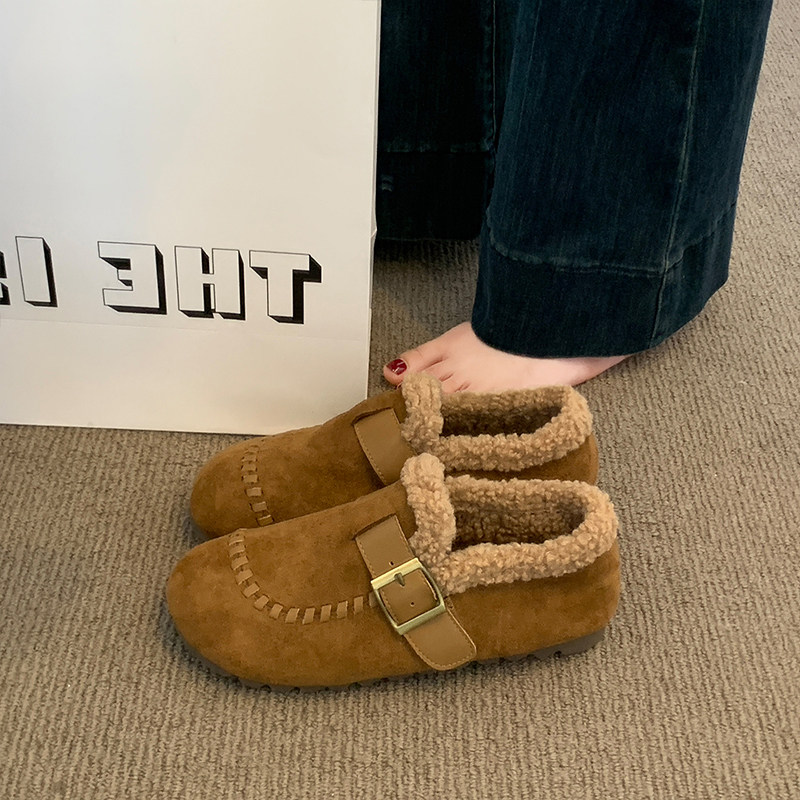 爆款复古休闲勃肯鞋女2025秋冬季新款内增高加绒豆豆鞋毛毛棉鞋子