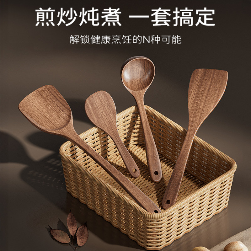 木锅铲不粘锅专用铲子乌檀木家用炒菜铲耐高温炒勺木勺饭汤勺加长