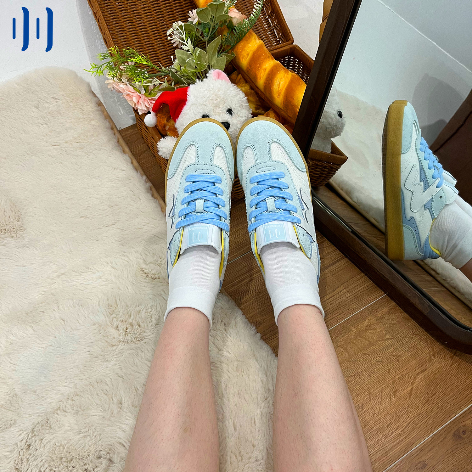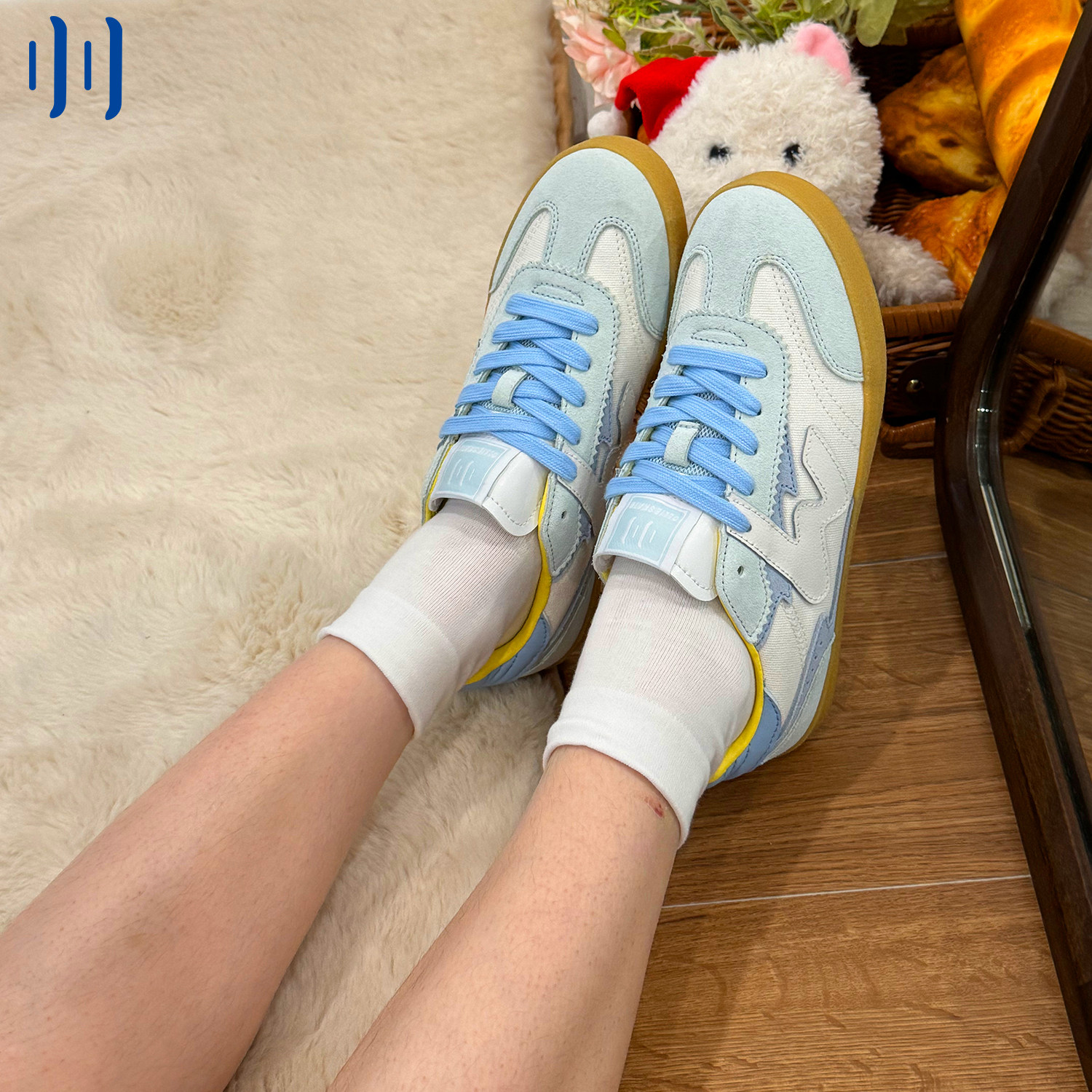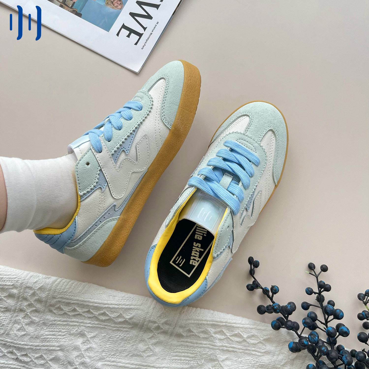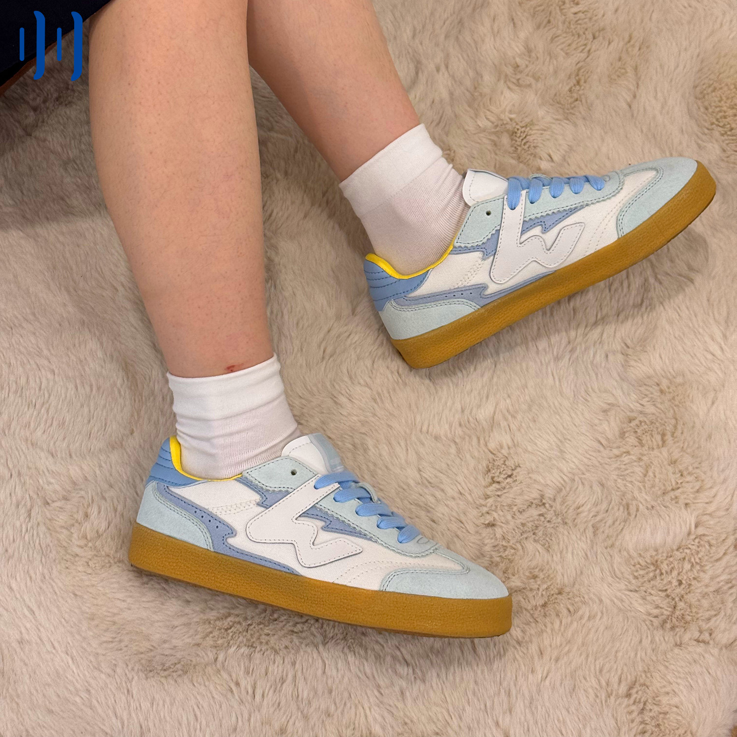 顽刻官方白蓝拼色翻毛皮生胶底W系列男女国潮德训滑板鞋