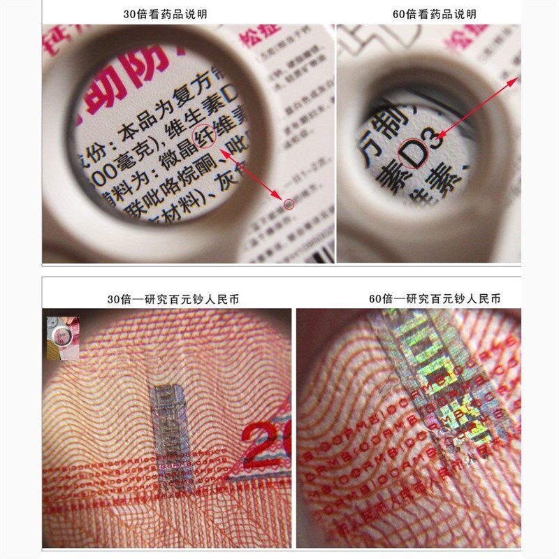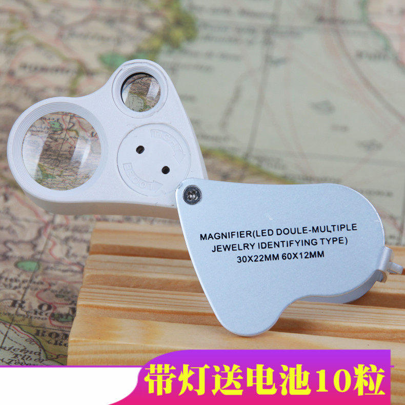 放大镜带灯30-60倍超清珠宝鉴别专用玉石鉴定 送13个W电池led古董