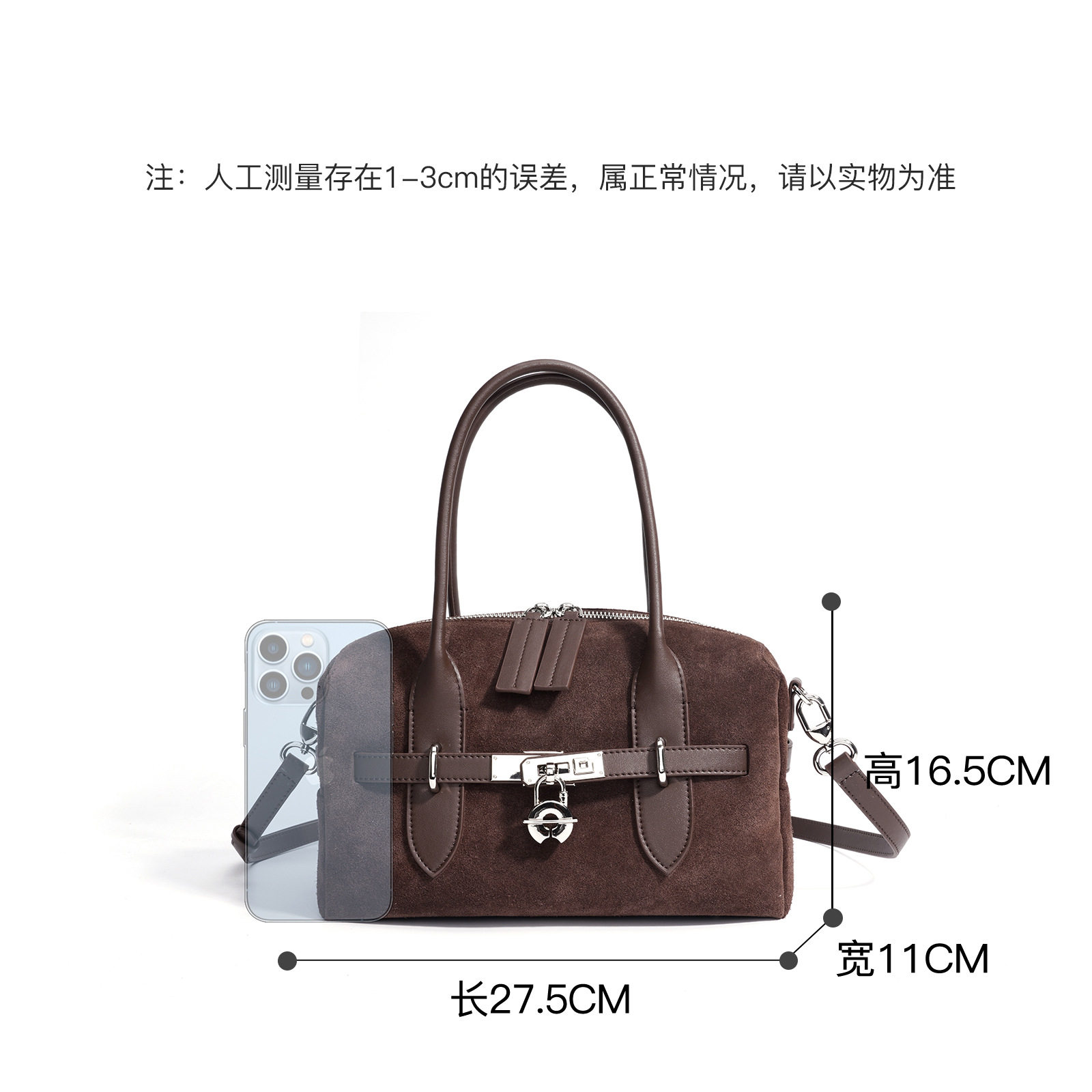 新款高级质感手提包斜跨包波士顿包秋冬磨砂撞色轻奢单肩包反绒