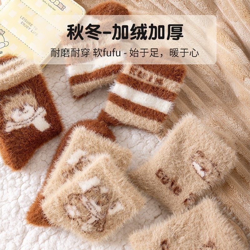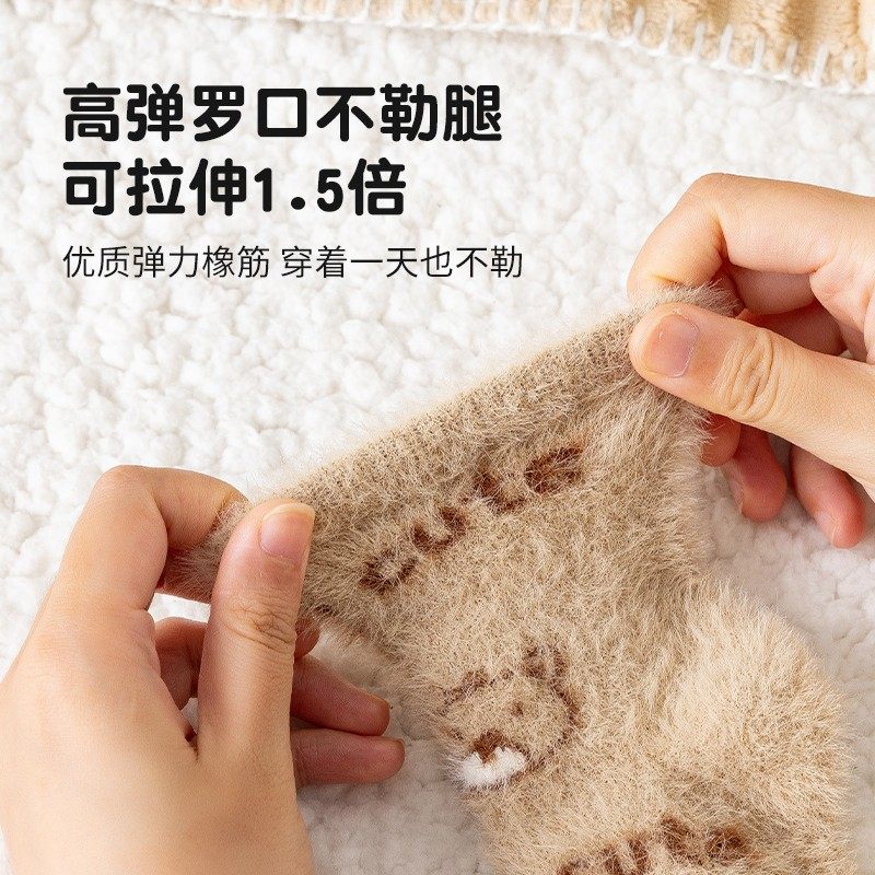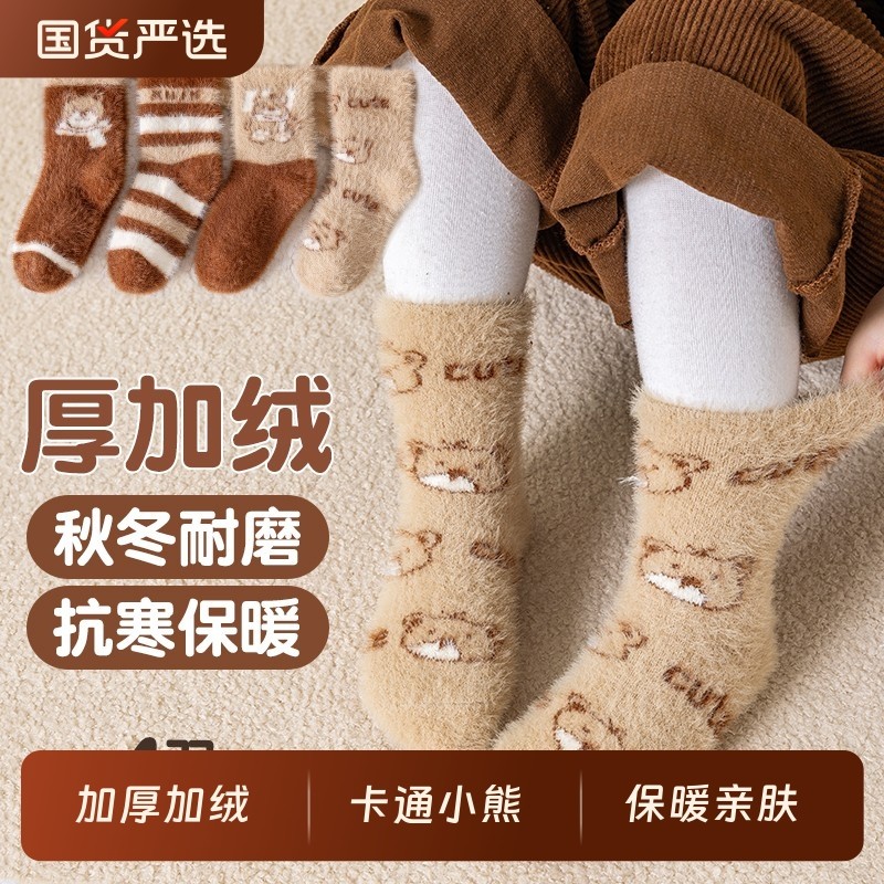 儿童厚袜子冬季加绒加厚水貂绒儿童袜子秋冬女童保暖袜小熊中筒袜